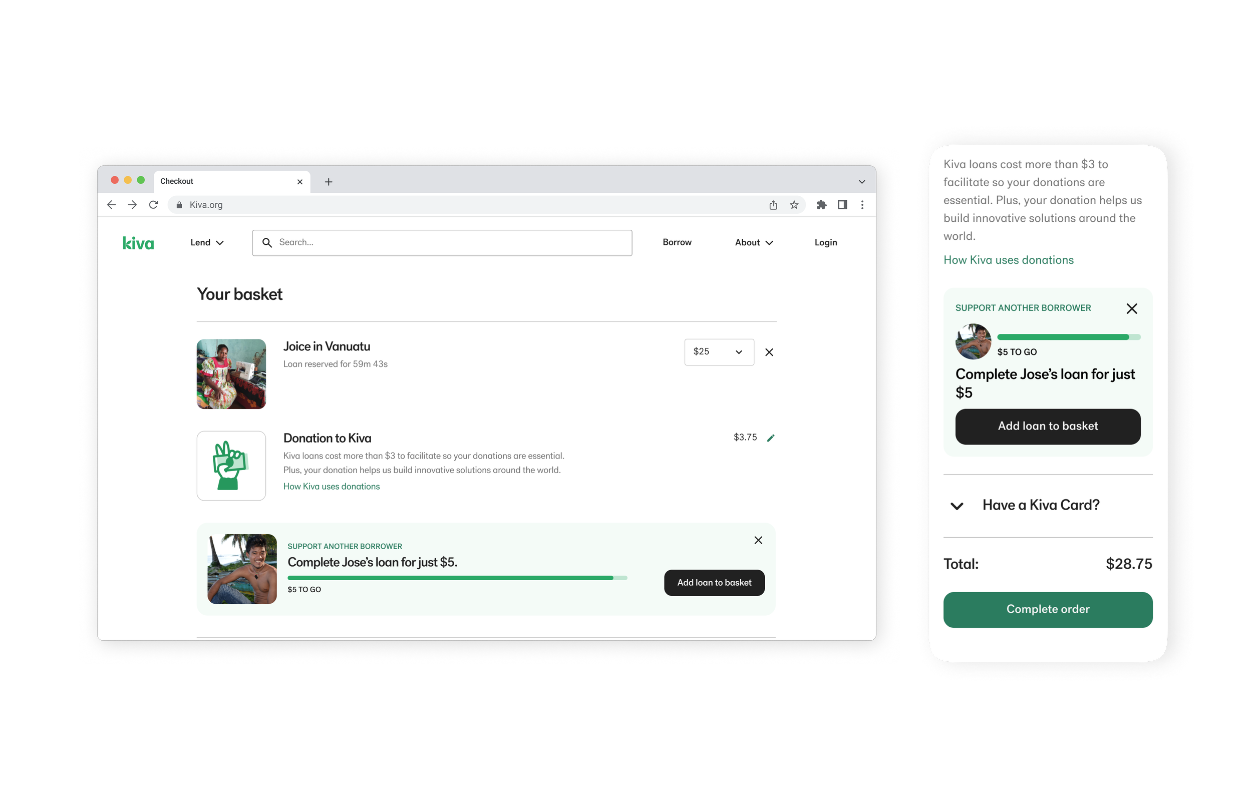 This feature is more than just a checkout upsell. It helps Kiva continue with its mission, but more importantly, it helps borrowers finish their funding goals.